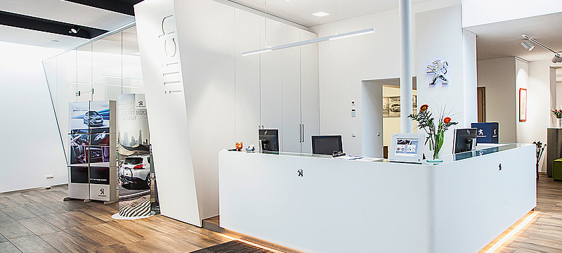 Die Fassade des nach nur acht Monaten fertig gestellten Gebäudes mit dem Schriftzug des Autohauses, dessen Buchstaben zugleich die Fensteröffnungen darstellen, signalisiert Bewegung und Mobilität. Diese Form samt dem markanten Schriftzug zieht sich durch das gesamte Gebäude und dient auch als Verbindung zwischen dem alten und neuen Teil des Gebäudes. Sie findet sich auch im Gebäudeinneren mit Ausläufern bis hinauf an die Decke wieder.
