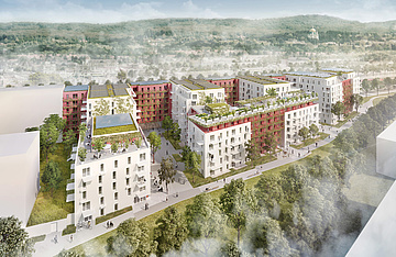 Mitentscheidend für den prognostizierten Wohnkomfort und die Nachhaltigkeit ist das richtige Nutzerverhalten. Zur Motivation und Information werden in jeder Wohneinheit über ein eigenes Display im Eingangsbereich Energieverbrauch, Tempera-turen und die Raumluftqualität visualisiert. Mithilfe der ausgeklügelten Gebäudeautomatisierung, gekoppelt an einen Wetterdienst, reagiert die Heizung im Winter bzw. die Kühlung im Sommer autonom.