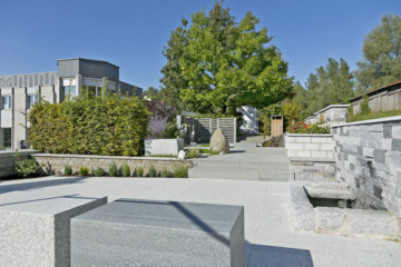 Als Inspirationsquelle für Planer und Bauherren realisierten die Poschacher Natursteinwerke einen umfangreichen Schaugarten am Firmenstandort im oberösterreichischen Langenstein. Dem Trend zu regionalen Natursteinen folgend stehen Anwendungsbeispiele aus Neuhauser, Herrschenberger und Aalfanger Granit sowie Gebhartser Syenit im Mittelpunkt. Diese Hartgesteine aus dem Mühl- und Waldviertel sind am Markt bekannt für ihre guten technischen Werte, aber auch für ihre Gestaltungsvielfalt, erklärt Geschäftsführer Anton Helbich-Poschacher. Der Mustergarten zeigt eine große Bandbreite an Formaten, Farben und Oberflächen, von der befahrbaren Pflasterplatte bis zu einem Baukastensystem für Hochbeete, die Kunden individuell zusammenstellen.