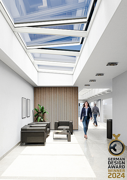 Das LAMILUX Modulare Glasdach MS78 bietet eine Vielzahl von Vorteilen, die es zu einer Spitzenlösung in der modernen Architektur machen. Durch seine einzigartige Kombination aus Funktionalität, Ästhetik und technischer Raffinesse hat es die hochkarätige Jury des German Design Awards beeindruckt und wurde in der Kategorie „Excellent Product Design – Building and Elements“ als „Winner“ ausgezeichnet.