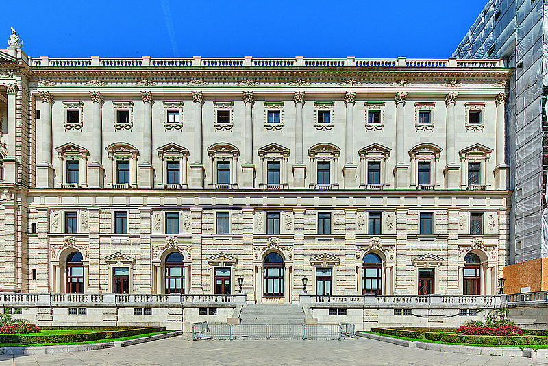 Als Teil des von Gottfried Semper konzipierten, aber nie realisierten Kaiserforums bildet die sogenannte Neue Burg den südlichen Abschluss der Wiener Hofburg. Begonnen wurde der monumentale Bau zwischen Heldenplatz, Burggarten und Burgring im Jahr 1881 unter der Leitung von Gottfried Semper und Carl von Hasenauer, finanzielle Engpässe und mehrmalige Wechsel der Bauleitung verzögerten die Fertigstellung jedoch bis 1913. Heute sind in dem Gebäude Teile der Österreichischen Nationalbibliothek und Sammlungen des Kunsthistorischen Museums untergebracht.