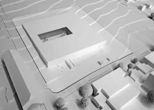 Die Projektverfasser setzen einen dreigeschoßigen, solitären Baukörper mit quadratischem Umriss nahe der Aichatstraße derart in das Bauareal, dass er sich nach allen Seiten klar begrenzt zeigt und das nach Norden ansteigende Gelände ohne wesentliche Veränderungen belässt. Der Baukörper zeigt sich an der Dr. Krajnc-Straße zweigeschoßig und schmiegt sich zunehmend in den Hang, sodass er schließlich im Norden in einem knappen Geschoß sichtbar bleibt. Das nach außen geschlossene Gebäude erscheint so als hermetischer, solitärer Baukörper, der nur über die wenigen, wesentlichen Öffnungen verfügt, die Einlass und Durchlass anzeigen. Dieser vermag seine Bedeutung und Funktion glaubhaft zu vermitteln und besetzt, insbesondere durch seine Gestalt und Proportion, den Ort in unmittelbar erlebbarer Qualität.